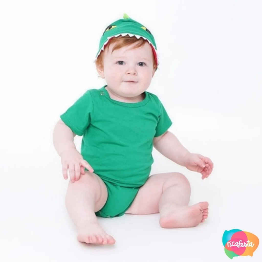 Para completar a imersão no mundo jurássico, que tal preparar um look especial para o aniversariante? Os pequenos podem usar um body bebê com estampa temática ou até mesmo uma fantasia infantil completa.