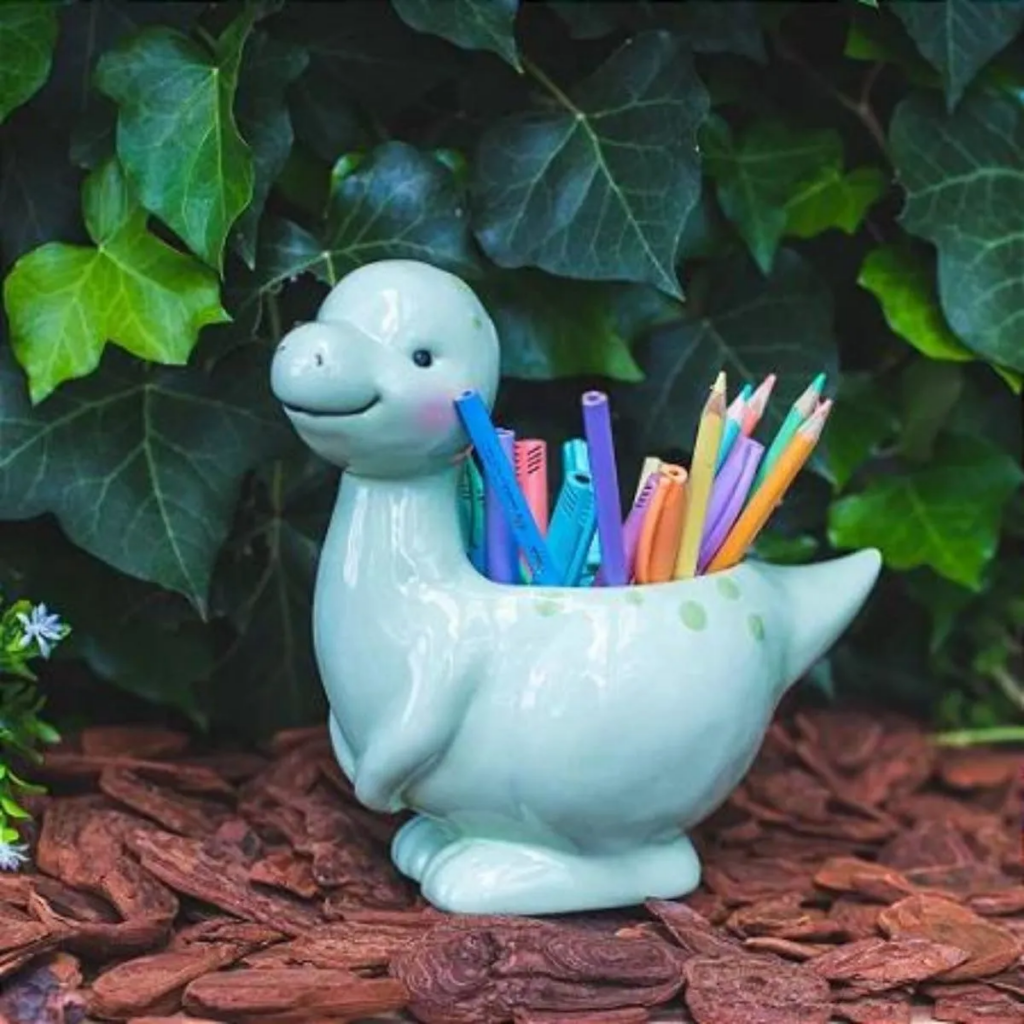Pequenos detalhes também fazem a diferença. Um cachepot com formato de dinossauro, por exemplo, pode servir como centro de mesa ou até mesmo como um divertido porta-trecos.