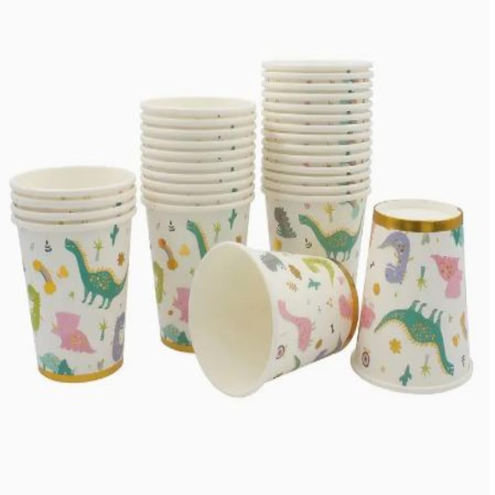 E para as bebidas, copos de papel personalizados deixam tudo mais harmonioso. Eles são práticos, sustentáveis e combinam perfeitamente com o conceito da aventura pré-histórica.